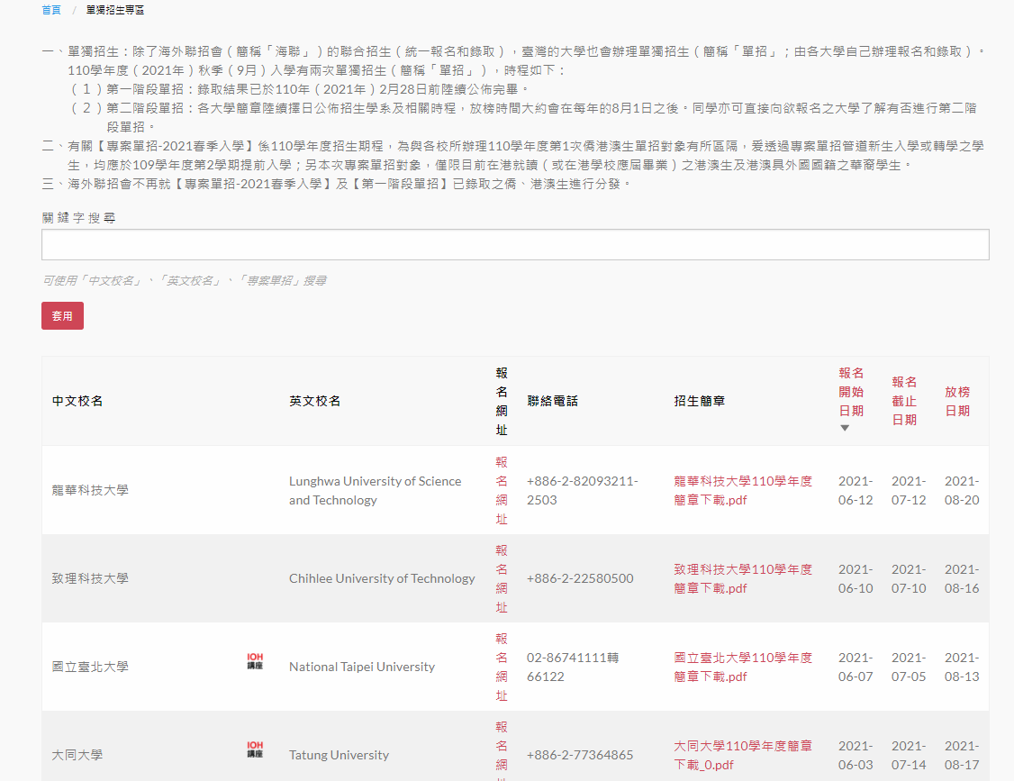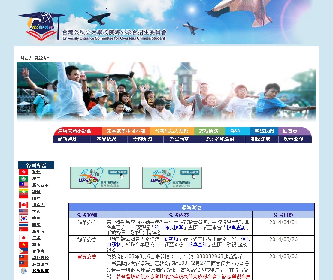 為利海外僑生及港澳學生能充分獲取我國升學及招生資訊,本會網頁設置「自招專區網頁平台」