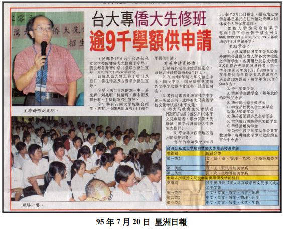 由僑大先修班自辦招收馬春班,結業生由聯招會併與印尼僑生(含印輔班)於第6梯次分發