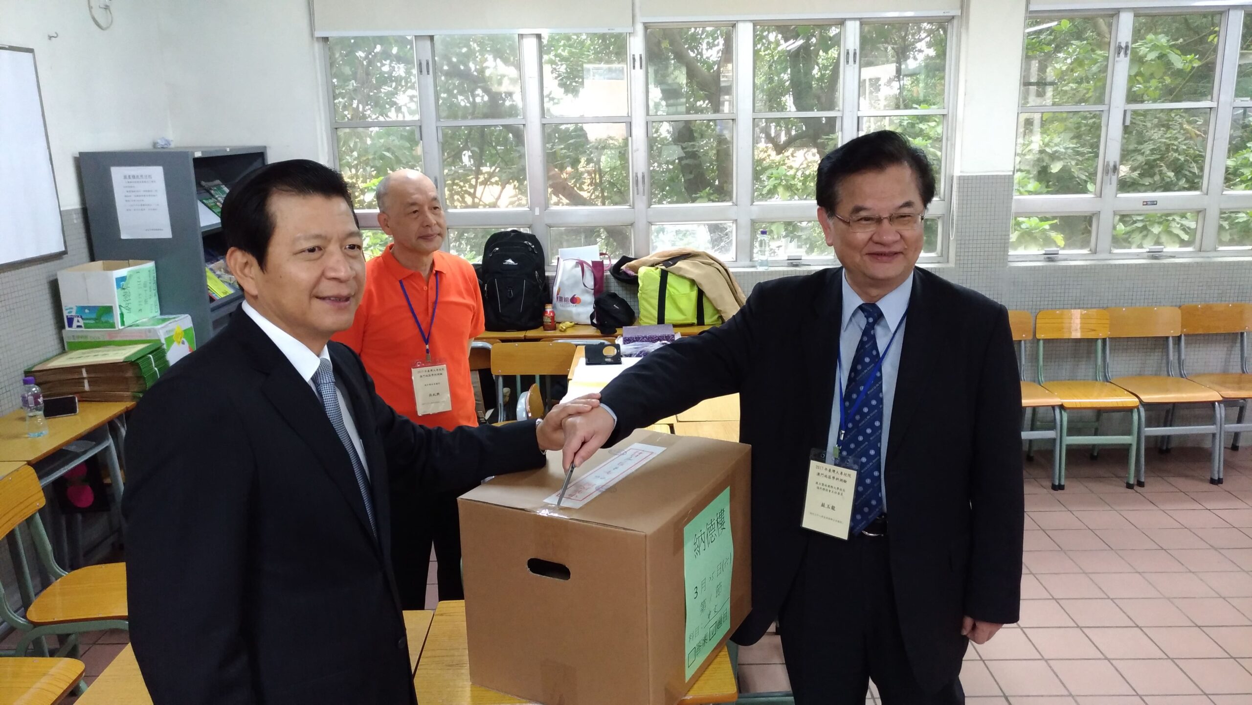 為維護100學年度招生正常運作,行政院大陸委員會澳門事務處(以下簡稱澳處)成立「澳門考區臨時工作會」,由澳處受理報名、學科測驗試務工作委請胡漢賢先生協助,聯招會負責命題及閱卷工作