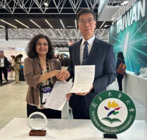 除此之外,東華代表團共會晤25所遍布世界四大洲的大學校院,一方面與已是姊妹校的合作夥伴,如:德國基森大學(Justus Liebig University Giessen)、西班牙巴塞隆納大學(University of Barcelona)、日本北海道大學(Hokkaido University)、韓國慶北大學(Kyungpook National University)等,共同檢視歷年合作交流情況,探究其他可能合作項目,彼此以落實交流、深化夥伴連結為共識與目標。 另一方面,與非姊妹校進行會談,如:法國土魯斯第一大學(Toulouse 1 Capitole University),里爾大學(Université de Lille)等,希望能締結校院合作,並推廣東華夏日短期課程、洽談教師共同授課、訪學等,提升東華學生國際移動力,亦為東華大學各院系媒合潛在合作夥伴與國際連結。 東華夏日課程是以東華特色領域之環境研究、原住民族、在地人文、AI應用為基礎,結合華語課程以及花東地區的旅遊優勢所設計出的短期營隊,該課程受到姊妹校的高度期待與歡迎。透過短期營隊的深入在地與互動學習,增進海外師生對臺灣和東華大學的瞭解,同時也有助於拓展未來各項學術合作與交流。 歐洲教育者年會於1989年成立,係歐洲高教國際化專業知識、網路和資源中心,擁有全球94國3,000名會員,每年9月於歐洲舉辦年會暨展覽,與會人數逾6,000人。 國際化是東華大學校務推動的重點項目之一,東華境外學生近千人,姊妹校逾500所,每年提供超過500個交換學生名額,積極促進師生國際交流以提升視野,並營造多元優質的國際化學習環境。今年度東華大學在THE亞洲大學排名中,國際化指標(International Outlook)為臺灣第7,展現優質國際化校園,未來亦將持續推進與深化校園國際化工作。