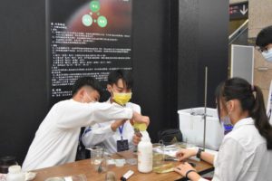 火星科展參賽學生聚精會神進行實驗(上圖)、貴賓參觀「火星綠藻屋」展示(下圖) 東海大學和國立自然科學博物館除了舉辦競賽外,在比賽前幾週就在科博館進行許多科學活動和市集,帶出全民玩科學的能量。為期兩天的火星車超級降落大賽及大型無人機的釋放,參賽者來自全國各高中,正在挑戰高難度的火星任務。而火星殖民隨著火箭不斷升空將會開始倒數,火星任務競賽激發學子的想像力和創造力,也同時把科學知識與問題結合解決。