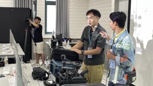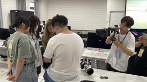 圖:參與者學習如何說好故事、動手剪輯出屬於自己的短片。 營隊課程在學員們自我介紹及分組後,學生逐漸建立起默契。黄郁智與徐仲彥講解專業器材功能、拍攝技巧與影視基礎知識應用,從敘事構思和分鏡畫面,讓參與者學習如何說好故事、動手剪輯出屬於自己的短片,資傳系在學的學生則當小老師,在手機與相機的混和教學下,學生們都實際操作到器材,最後在4K電腦教室完成作品。