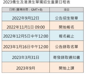 2023年僑生及港澳生學位生單獨招生簡章公告 (報名時間:2022/11/01至2022/12/5)